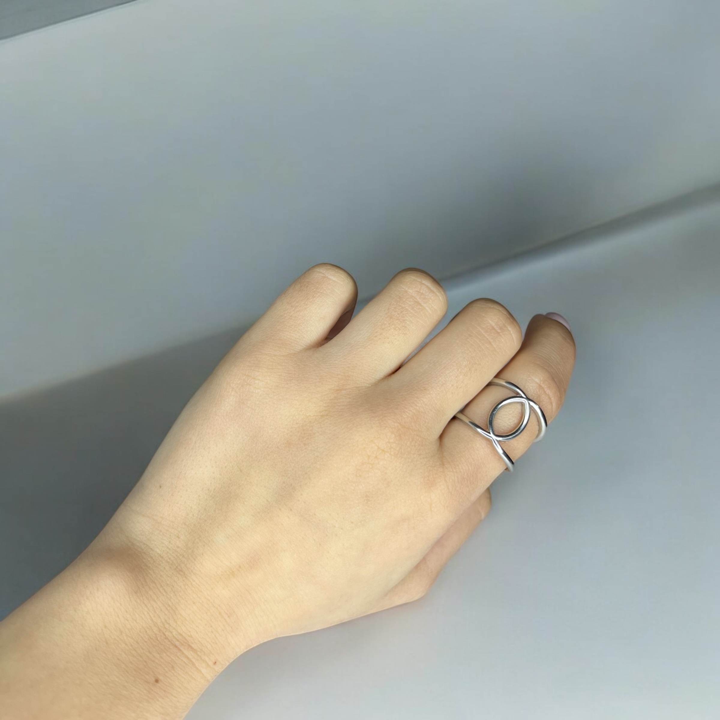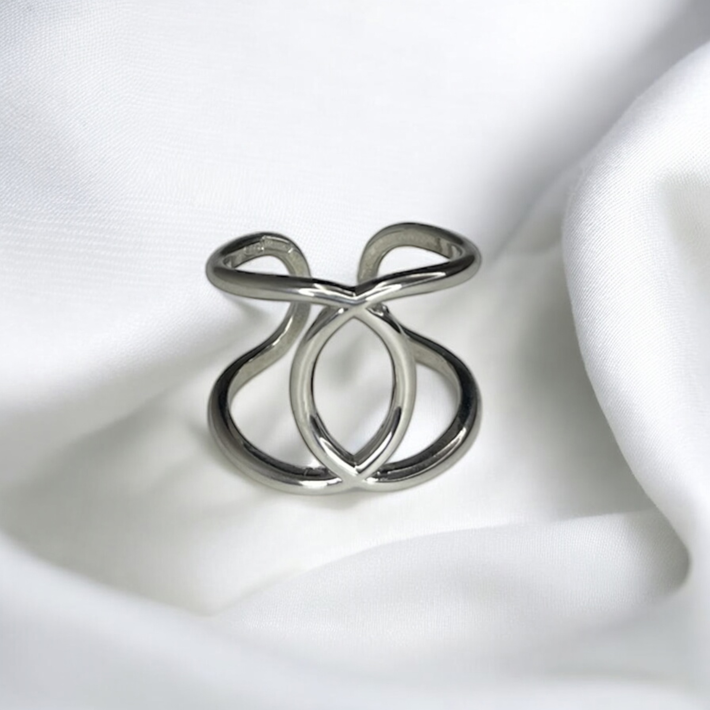 Anello regolabile in Argento 925 con finitura rodiata, dal design armonioso e intrecciato. Il simbolo perfetto di chi ha scelto la propria pace interiore. Elegante, luminoso e resistente, pensato per donne che vogliono sentirsi centrate e autentiche.